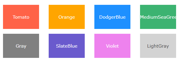 در طراحی صفحات HTML، شما با استفاده از نام رنگ ها می توانید رنگ متن یا رنگ پس زمینه یک عنصر را مشخص کنید. در تصویر زیر اسامی برخی از رنگ ها به همراه رنگ آن ها نمایش داده شده است.
