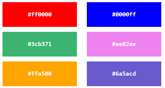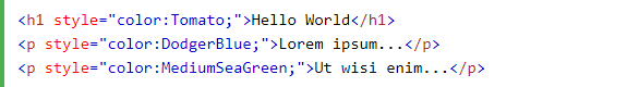 دستوررات زیر نحوه تعیین رنگ عناصر HTML را نشان می دهد که خروجی آن را در تصویر بالا می بینید.