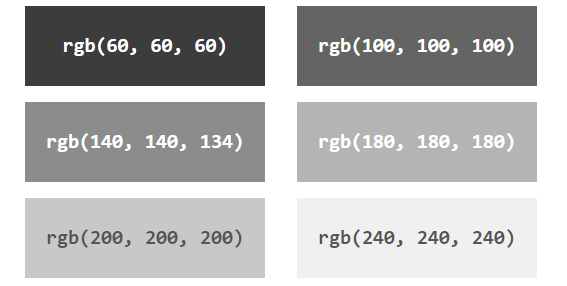 این نوع رنگ ها معمولا با مقادیر یکسان برای هر سه پارامتر تعریف می شوند. شما می توانید برای ایجاد سایه های مختلف از این رنگ ها استفاده کنید.