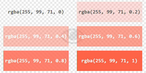 مقدار رنگی RGBA نیز شبیه مقدار رنگی RGB است با این تفاوت که مقدار چهارمی به عنوان Alpha که شفافیت (opacity) رنگ را مشخص می کند، می پذیرد.